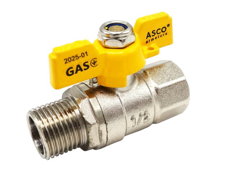 Кран шаровый никель для газа Nickel PRO 1/2" ЗВ PN20 желтая бабочка ASCO 1/26