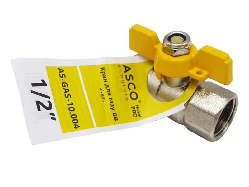 Кран шаровый никель для газа Nickel PRO 1/2" ВВ PN20 желтая бабочка ASCO 1/26
