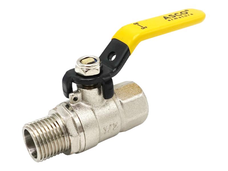 Шаровой кран для внутренних систем газоснабжения ASCO Nickel PRO отличается надежностью и функциональностью. Выполнен из никелированной стали, что обеспечивает прочность и защиту от коррозии. Кран имеет комбинированную, внутреннюю и внешнюю, резьбу (1/2") и полнопроходной канал, который не допускает появления засоров. Желтый пластмассовый рычаг-флажок благодаря удобному углу поворота 90 ° гарантирует быстрое и надежное перекрытие газа. Рычаг-флажок надежно закреплен гайкой, что не допускает его расшатывания со временем. Кран выдерживает давление до 20 бар и температуру от –15 °C до +60 °C. Это гарантирует длительный срок его использования, минимум до 25 000 циклов (наработка на отказ — 50 000 циклов). Монтируется горизонтально и вертикально. Гарантия — 7 лет. Страна-производитель — Китай.