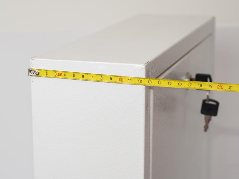Металлический коллекторный ящик белого цвета. Есть модели встроенные, а также наружные. Позволяют эстетично спрятать в интерьере коллекторные узлы. Встраиваемые и пристенные коллекторные шкафы служат для монтажа блоков в системах отопления и горячего водоснабжения, в том числе и типа "теплый пол". Чаще всего внутри его устанавливается коллекторный узел с циркуляционным насосом. Также используется еще и как маскировка - в него прячут детали, портящие дизайн помещения, а также уберегают гребенки от доступа к ним детей и домашних животных. Обычно на практике распределительные короба делают белыми. Материал: оцинкованная сталь. Окрашивание производится порошковым красителем-эмалью после фосфатной очистки стали. Цвет по RAL 9016. У встроенных моделей боковые стенки не окрашены, и имеют отверстия, а также ножки. Наружные - похожи на часть интерьера. Независимо от подтипа, все ящики оборудованы дверцей, закрывающейся на ключ (идут в комплекте поставки). Глубина ящика: 120 мм.