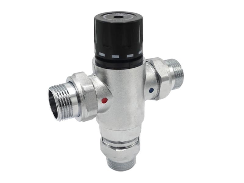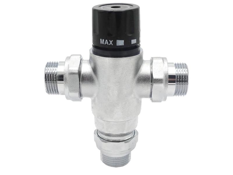 Термостатический смесительный клапан 1" V&G применяется в системах водоснабжения и отопления для поддержания заданной температуры теплоносителя: теплого пола, радиатора, котла или бойлера. Корпус клапана изготовлен из никелированной латуни и имеет резьбовые выходы 1" Н с накидными гайками для удобного монтажа. На патрубках есть цветовое маркеры для подключения потока горячей и холодной воды. На колпачке обозначена допустимая температура воды (min и max), что защищает систему от повреждений. Диапазон рабочих температур составляет от 35 до 60 °C. Клапан упакован в фирменную картонную коробку со штрихкодом. Размер коробки 17 × 14 × 6 см. Производство: Китай.