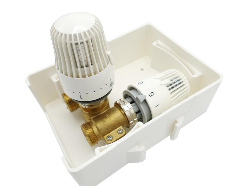 Мультибокс К/RTL V&G предназначен для регулирования работы системы «теплый пол» в жилых или коммерческих помещениях. Его конструкция совмещает две функции: поддержание комфортной температуры воздуха в помещении (10–30 °C) и предотвращение перегрева пола (20–50 °C). Если температура воды или воздуха превышает установленное значение, термостатический клапан автоматически ограничивает или перекрывает поток теплоносителя. Мультибокс представляет собой монтажный блок размером 17 х 21,5 см. Оснащен двумя датчиками: выносным для контроля температуры воздуха и внутренним для температуры теплого пола. Для подключения предусмотрены выходы 3/4" НР. Монтаж мультибокса производится с соблюдением потока воды, указанного стрелками на выходах. Мультибокс упакован в фирменную картонную коробку со штрихкодом и размером 24 х 18 х 15,5 см. В комплект входят крепления. Производство: Китай.