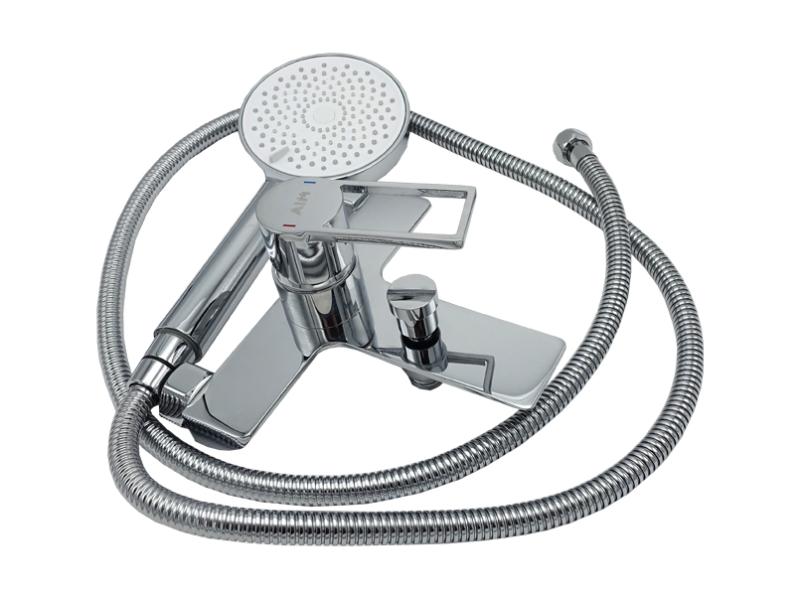 Элегантный и компактный смеситель для ванны AIM — идеальное решение для небольших ванных комнат. Изготовлен из хромированной латуни, что придает ему зеркальный блеск и защищает от коррозии. Корпус длиной 18 см имеет короткий литой гусак (10 см). В его носик вмонтирован аэратор, он не допускает разбрызгивания воды и прохождения примесей. Верхний рычаг с керамическим картриджем обеспечивает плавную регулировку напора и температуры воды. Рычаг прямоугольной формы имеет удобную прорезь для захвата, что позволяет управлять им даже одним пальцем. На изливе расположен круглый переключатель режимов с ванны на душ. Хромированный гофрированный шланг для душа длиной 1,5 м оснащен соединительными гайками для подключения смесителя и душевой лейки. Многорежимная душевая лейка длиной 24 см и диаметром 10,5 см обеспечивает различные варианты подачи воды, переключить на которые можно с помощью поворотного диска. Для удобного пользования лейка крепится на настенный держатель. Смеситель монтируется на стену и не требует особого ухода. Поставляется в прочной фирменной картонной коробке со штрихкодом. В комплект входят: смеситель для душевой кабины, душевая лейка, держатель, шланг, 2 накладные чаши с эксцентриками и прокладками, инструкция, гарантийный талон, трикотажные перчатки. Размер упаковки 400х230х125 мм. Гарантия: 5 лет. Производство: Китай.
