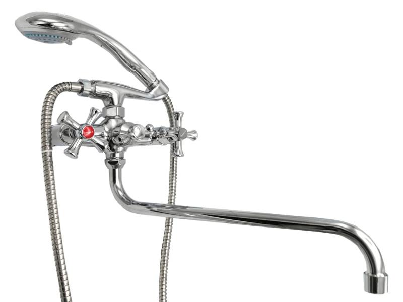 Смеситель для ванны с длинным поворотным гусаком и ручками-крестиками от ТМ MILLZ выполнен из хромированного силумина, что придает ему серебристый блеск и защищает от коррозии. Литой корпус (длина 18 см) оснащен двумя кранами-буксами для регулировки напора и температуры воды, а также флажком-переключателем режимов — с ванны на душ. Длинный съемный гусак (28 см) легко поворачивается в любую сторону, что удобно, если необходимо набрать воду в другие емкости. Носик излива направлен вниз и оснащен аэратором, что не допускает перерасхода воды. Душевая лейка соединена с корпусом с помощью легкого гофрированного шланга (1,5 м). Лейка (19,5 см) имеет хромированную поверхность, а ее рабочая зона (диаметр 6,5 мм) — матовую, что облегчает уход за ней. Три вида форсунок образуют разные режимы душа, переключить на которые можно с помощью поворотного рычажка. Смеситель монтируется на стену. Не требует особого ухода и при правильной эксплуатации прослужит не менее 5 лет. Поставляется в плотной картонной коробке (368 х 115 х 88 мм) со штрихкодом. В комплектацию входят: корпус смесителя, гусак, душевая лейка (в пузырчатой пленке), гофрированный шланг, держатель, 2 эксцентрика с прокладками и декоративной чашей, инструкция, гарантийный талон. Корпус смесителя упакован в белый тканевый мешочек для защиты от царапин. Гарантийный срок — 12 месяцев. Производство — Китай.