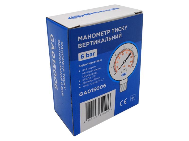Манометр радиальный 1/4'Н Ø50 0-6 bar 1/200