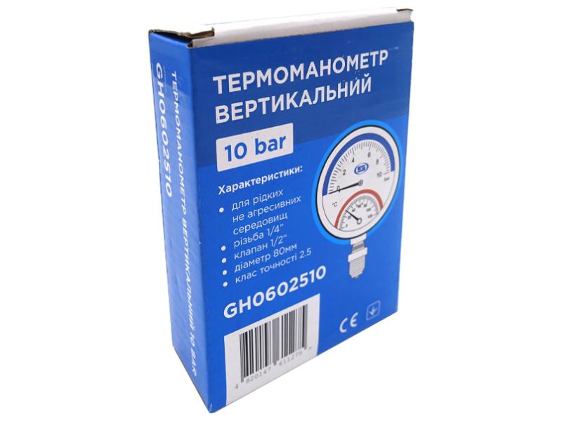 Термоманометр радиальный Ø63 с клапаном 1/2" до 120°C 1/60