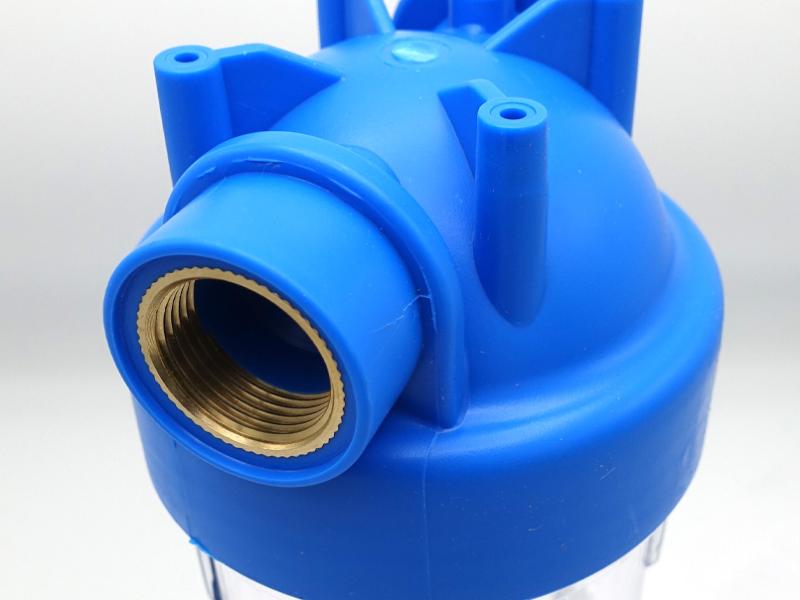 Пластиковая непрозрачная колба молочного цвета для магистрального фильтра. Класс продукции стандарт. Материал резьб - латунь. Верхушка колбы синего цвета. Варианты диаметров: 1/2, 3/4 и 1 дюйм. На каждой колбе нанесена маркировка. Рабочее давление 10 бар. Температура воды: до 40 градусов