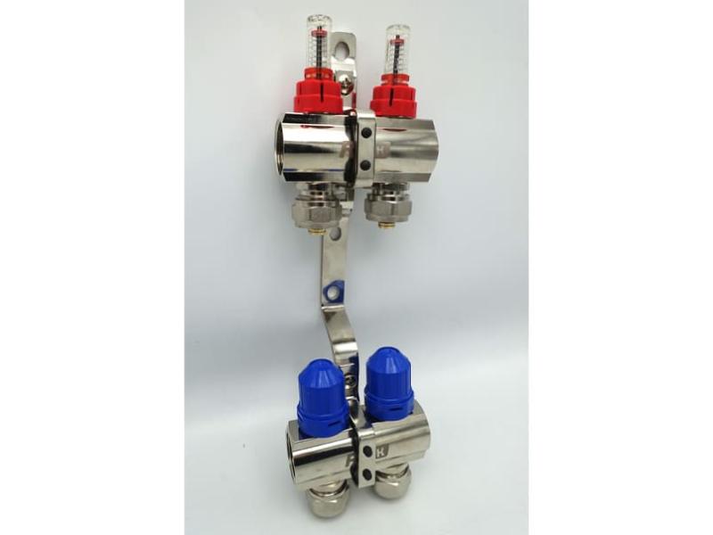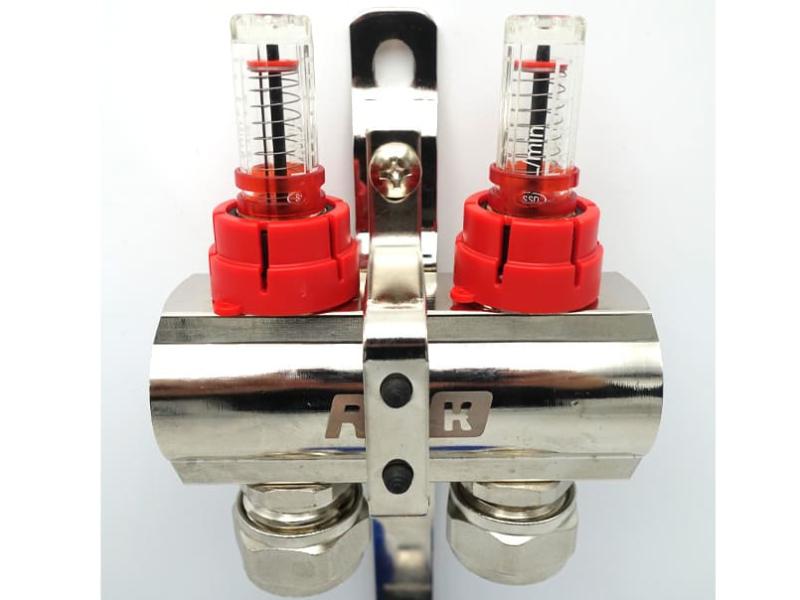 Коллекторная группа со встроенными расходомерами бренда RSk (Италия) со стойким никелевым глянцевым покрытием. Количество выходов: от 2 до 12 . С евроконусами. Диаметр выходов 1" х 16. Материал: латунь CW617N, покрытие - никель. Крепления в комплекте. Упаковка - картон с ложементом, благодаря чему коллектор не деформируется при транспортировке. Коллекторная группа RSk (Италия) с расходомерами используется в системах отопления и горячего водоснабжения, позволяя создать и обеспечить надежную стабильную работу системы теплого пола. Она дает возможность значительно упростить систему, исключив из нее дополнительную арматуру. Расходомеры позволяют снизить температуру пола в отдельных помещениях, где, например, на данный момент никто не живет. В целом коллекторная группа в сборе RSk предназначена для выполнения своей главной функции – обеспечения равномерного давления и поступления воды для всех приборов и контуров в системе. Комплект поставки коллекторной группы для теплого пола включает подающий коллектор с расходомерами, обратный коллектор и крепежи. Габариты коробки: 380*230*60 мм