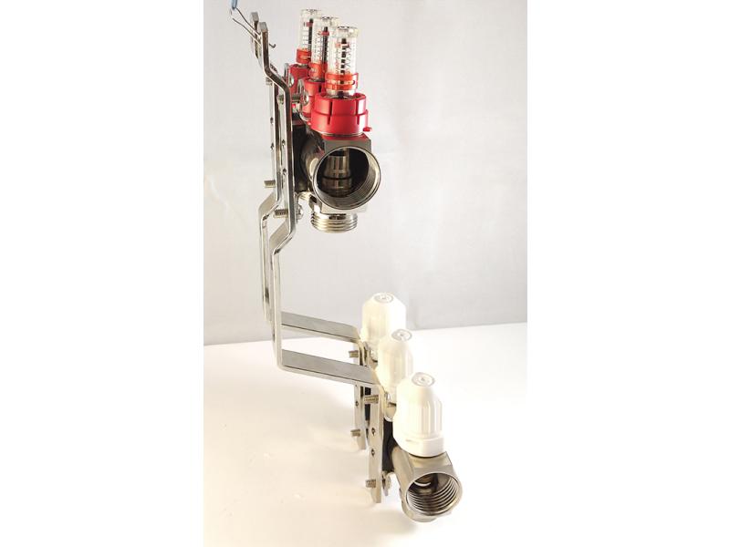 Коллекторная группа со встроенными расходомерами бренда RSk (Италия) со стойким никелевым глянцевым покрытием. Количество выходов: от 2 до 12 . С евроконусами. Диаметр выходов 1" х 16. Материал: латунь CW617N, покрытие - никель. Крепления в комплекте. Упаковка - картон с ложементом, благодаря чему коллектор не деформируется при транспортировке. Коллекторная группа RSk (Италия) с расходомерами используется в системах отопления и горячего водоснабжения, позволяя создать и обеспечить надежную стабильную работу системы теплого пола. Она дает возможность значительно упростить систему, исключив из нее дополнительную арматуру. Расходомеры позволяют снизить температуру пола в отдельных помещениях, где, например, на данный момент никто не живет. В целом коллекторная группа в сборе RSk предназначена для выполнения своей главной функции – обеспечения равномерного давления и поступления воды для всех приборов и контуров в системе. Комплект поставки коллекторной группы для теплого пола включает подающий коллектор с расходомерами, обратный коллектор и крепежи.