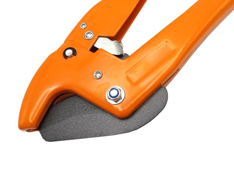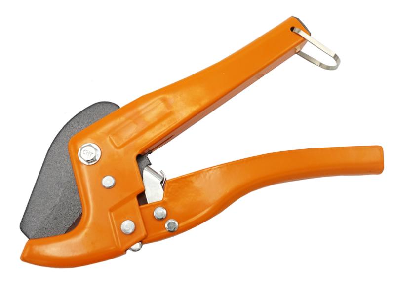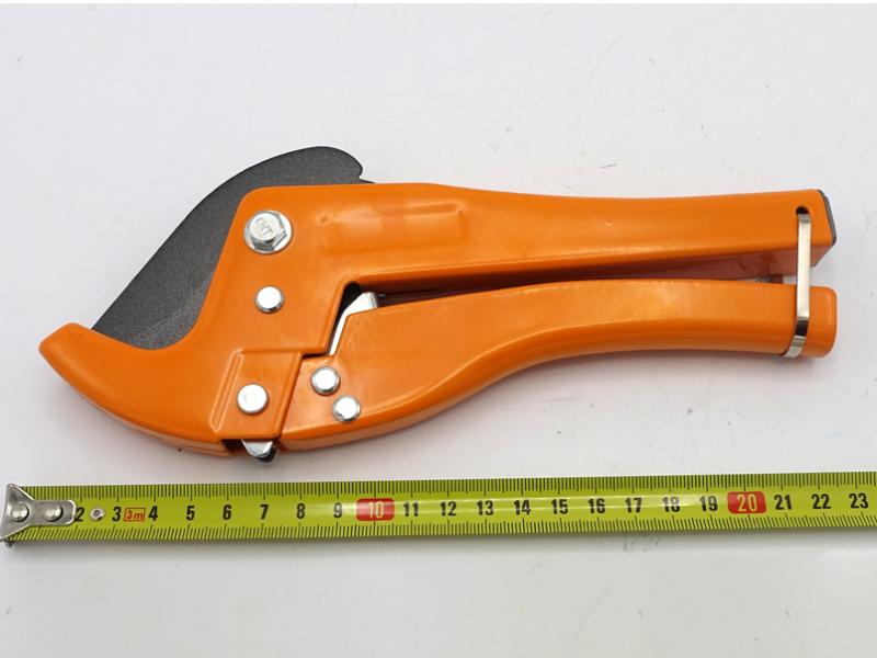 Ножницы для пластиковых труб до 42 мм в диаметре. Ножницы предназначены для ручной разрезки под прямым углом металлополимерных и пластиковых труб с внешним диаметром до 42 мм включительно. При резке гибкой трубы из ПВХ следует вращать трубу при сжатии. Совместимость: подходит для труб диаметром до 42 мм. Проверка: До начала работы резаком необходимо убедиться, что нож заходит точно по центру паза верхних губок. Перекос свидетельствует либо об слабой затяжке болтов, либо о слабой затяжке винта оси. Все болты следует подтянуть. ВАЖНО! После работы с трубами необходимо очистить лезвие смазкой. Без этого лезвие может прийти в неисправность. После 300 циклов пореза необходима заточка лезвий. ВНИМАНИЕ! Когда этот продукт используется зимой, трубу сначала помещают в теплую воду для нагрева для лучшей резки. Не использовать для разреза электрокабелей.