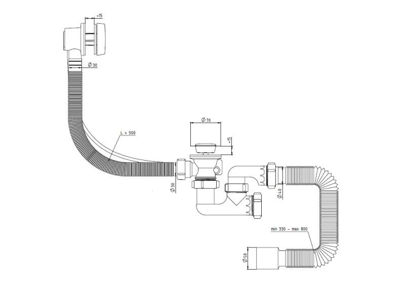 Сифон-автомат для ванни нерж. випуск 1 1/2" з перелив. і гнучкою труб. Flat Steamer SVD-05 1/15