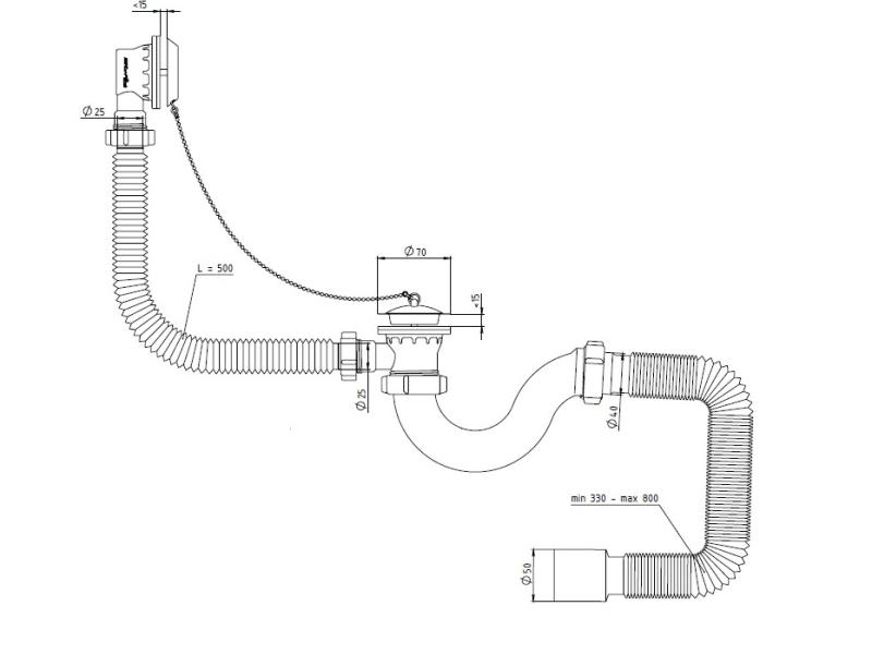Сифон-автомат для ванни нерж. випуск 1 1/2" з перелив. і гнучкою труб. Flat Steamer SVD-05 1/15