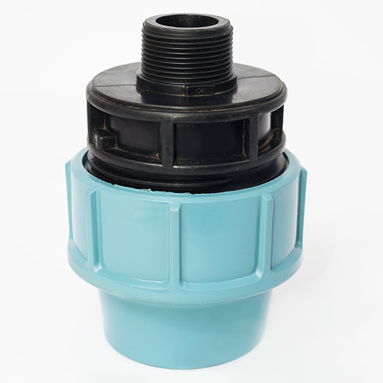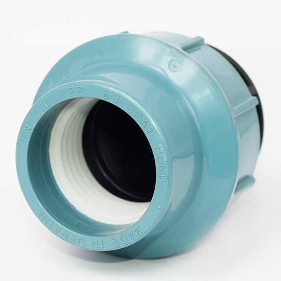 Муфта затискна для поліетиленових труб, зовнішня різьба 1 1/4", діаметр 63 мм. Компресійні фітинги застосовуються для створення зовнішніх водопроводів, поливних систем і використовуються переважно для транспортування холодної води. Переваги: доступність за ціною, невелика вага, швидкий і легкий монтаж, що не вимагає додаткових інструментів, можливість створення роз'ємних з'єднань. Номінальна температура для застосування – 20˚С, а максимальна робоча температура – до 60˚С в межах робочого діапазону труб. Номінальний тиск залежить від діаметра: для 16, 20, 25, 32, 40, 50, 63 мм він складає 16 бар, для фітингів 75, 90 і 110 – 12,5 бар відповідно. Компресійні фітинги виробляються за стандартами UNI, ISO, DIN, NF, різьба за стандартами UNI, а фланцеві з'єднання відповідають вимогам UNI і DIN. Всі фітинги виконані за загальними технічними умовами. Для виготовлення фітингів використовується: чорний поліпропілен для корпусу, чорна прокладка з нітрилової гуми, біле затискне кільце з поліацетата і гайка з поліпропілену.