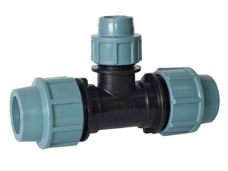 Трійник, редукційний для поліетиленових труб Ø32 х 20 х 32. Компресійні фітинги застосовуються для створення зовнішніх водопроводів, поливних систем і використовуються переважно для транспортування холодної води. Переваги: доступність за ціною, невелика вага, швидкий і легкий монтаж, що не вимагає додаткових інструментів, можливість створення роз'ємних з'єднань. Номінальна температура для застосування 20˚С, а максимальна робоча температура - до 60˚С в межах робочого діапазону труб. Номінальний тиск залежить від діаметра: для 16, 20, 25, 32, 40, 50, 63 мм воно складає 16 бар, для фітингів 75, 90 і 110 - 12,5 бар відповідно. Компресійні фітинги виробляються відповідно до стандартів UNI, ISO, DIN, NF, різьба відповідно до UNI, а фланцеві з'єднання відповідають вимогам UNI і DIN. Всі фітинги виконані відповідно до загальних технічних умов. Для виготовлення фітингів використовується чорний поліпропілен для корпусу, чорна прокладка з нітрилової гуми, біле затискне кільце з поліацетата і гайка з поліпропілену.