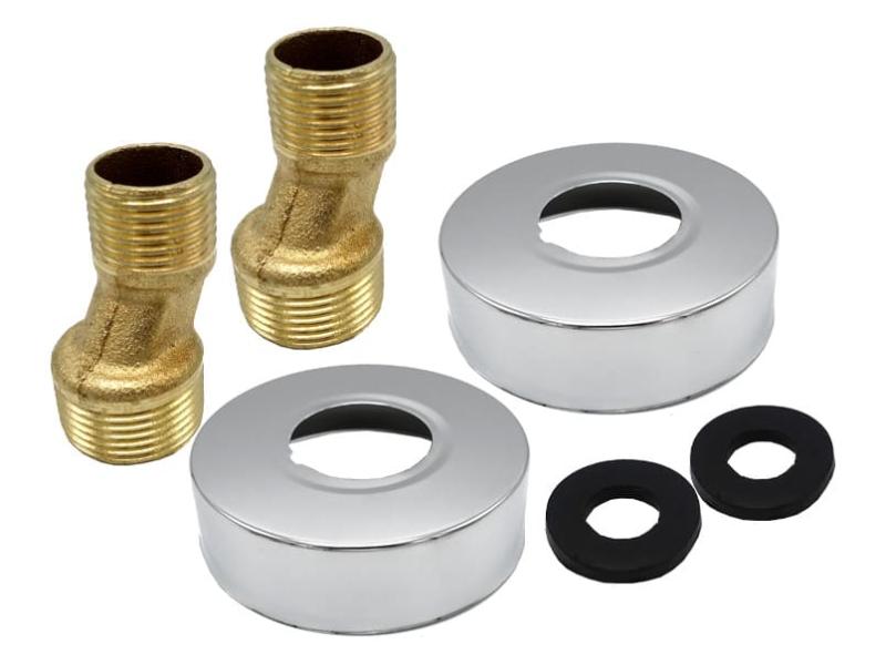 Комплект ексцентриків із чашками MILLZ – це перехідник з водопровідної труби на кран або навпаки. Виріб виготовлений з латуні, має захисне хромове покриття відбивача, покликане додатково захистити деталь від корозії та покращити її зовнішній вигляд. Застосування даного фітинга компенсує неточність в установці водорозеток, а також дозволяє скоригувати розташування змішувача до сторонніх поверхонь. Це перехідник, у якого вісь має широку і вузьку різьбову частину, зміщену один до одного. Його розмір становить 3/4 х 1/2 (15 х 20 мм). В комплекті також ідуть хромовані чашки-декори циліндричної форми і гумові прокладки чорного кольору.