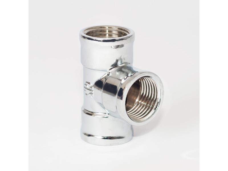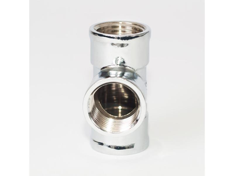 Хромований трійник, внутрішній-внутрішній-внутрішній, діаметр різьби 1/2 дюйми. Різьбові фітинги – це компоненти трубопроводу, що застосовуються для розгалуження і з'єднання його окремих частин, перехід на трубу більшого або меншого діаметра. Важливою сферою застосування різьбових фітингів є їх використання при підключенні сантехнічних приладів (зливні бачки, змішувачі, котли, бойлери, системи очищення води, пральні та посудомийні машини). Латунні нікельовані фітинги ASCO Armatura застосовуються для з'єднання різних видів трубопроводів, а також для підключення сантехнічної арматури, різноманітних приладів, пристроїв контролю і регулювання трубопровідних систем. Ці фітинги виготовляються методом гарячого штампування, що дозволяє отримувати вироби підвищеної міцності з потовщеними стінками. Асортимент різьбових фітингів включає: коліна, трійники, муфти, ніпелі, заглушки, перехідники, футорки, прямі та кутові згони-американки. Продукція фірми ТМ ASCO armatura є надійною, якісною, з тривалим терміном служби.