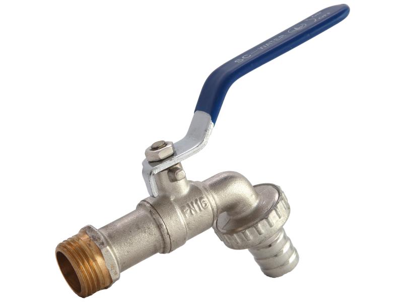 Кран для поливу 1/2" ЕСО 12/120 - кран, що застосовується в якості запірної арматури на трубопроводах систем водопостачання (у тому числі питного) з робочою температурою до 75 ºС і тиском до 10 бар. Наявність знімного штуцера з накидною гайкою дає можливість виробляти його заміну в залежності від діаметра і матеріалу застосовуваного шланга. Розсікач забезпечує формування компактного струменя виливу. Кран оснащений алюмінієвою ручкою. Різьба приєднання - зовнішня. Неремонтопридатний. Мінімальний ресурс - 4 тис. циклів. Крани для поливу мають ще дві назви: кран зі штуцером і кран-пиво. Перша назва обумовлено наявністю виходу типу "йорж", друге, тому що кран врізається в ємність з водою. Відрізняються крани видом покриття (є нікель чи ні) і типом латуні (марка CW617N). Колір ручки може змінюватися.