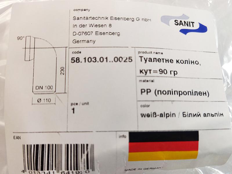 Коліно від бренду SANIT для підʼєднання унітаза до каналізаційного стоку з діаметром отвору для підʼєднання в 110 мм і кутом нахилу в 90°. Колір білий. Матеріал: пластик і гума. Надійна і перевірена модель. Відводи, гофри, патрубки до унітазів та бачків, пластикові трубки та інші пластмасові деталі Sanit виробляються з використанням технологічних процесів лиття під тиском та термопресуванням. Фанові труби (перехідники, сполучні елементи) Sanit - призначаються для з'єднання унітазу з каналізаційною трубою. Виготовляються з поліпропілену із спеціальним манжетним ущільнювачем. Для своїх виробів компанія використовує лише високоякісну сировину, що забезпечує надійність, порівняно з іншими сполучними елементами.