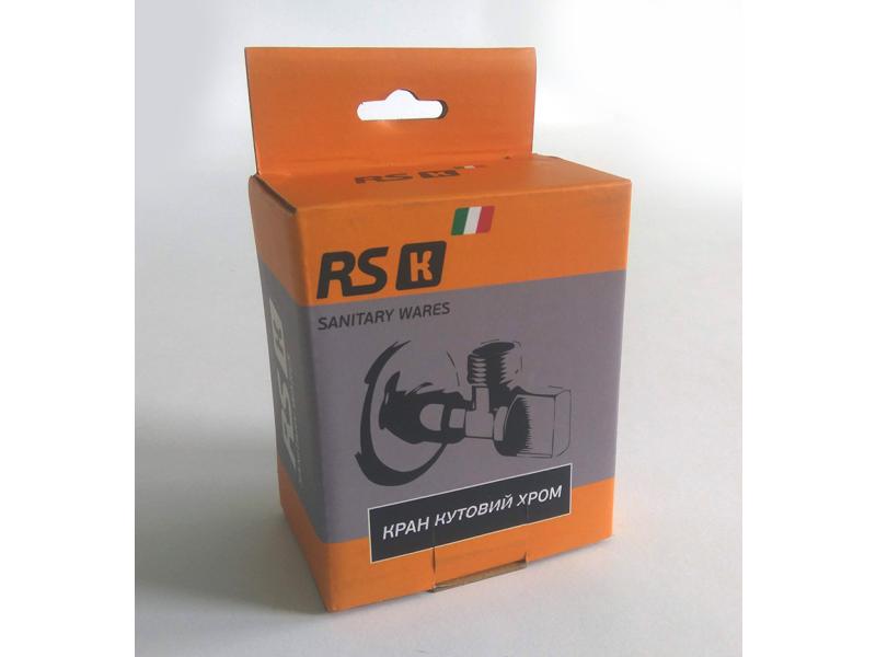 Кутові приладові крани торгової марки RSk (Італія) призначені для підключення сантехнічних приладів, в тому числі пральних та посудомийних машин, унітазів, бойлерів. Матеріал кранів – високоякісна латунь. Покриття – хром. Поставляються в картонній упаковці в комплекті з декором (декоративна чашка) круглої форми. Розміри 1/2"х1/2" і 1/2"х3/4".