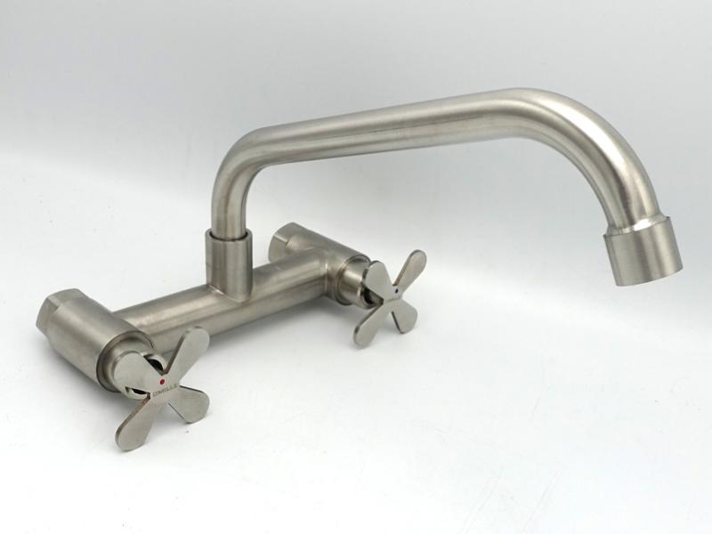 Змішувач для кухонної мийки MILLZ настінний буксовий ручки-хрестики MRS-SS-X-0003 нержавіючий 1/10