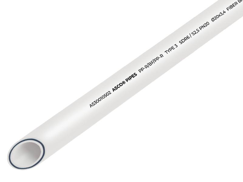 Біла поліпропіленова труба PN20 PP-RCT BASALT Ø25x4,2mm SDR 6.0/S2.5 ASCO® Turkey. Продукція ASCO PPR використовується для монтажу трубопроводів різного призначення: систем холодного і гарячого водопостачання, опалення та технологічних трубопроводів харчової й хімічної промисловості. ASCO PPR – це високотехнологічна продукція, європейські виробничі лінії, європейська сировина, контроль якості, а також технічні характеристики, які відповідають нормам стандартів ДСТУ, DIN та ін. Продукція ASCO PPR включає широкий асортимент труб і сполучних елементів діаметром 20-110 мм, що дозволяє монтувати трубопровідні системи будь-якої складності. Продукція поставляється в білому і сірому кольорі, асортимент бренду включає понад 1000 товарних позицій. Переваги використання поліпропіленових труб ASCO PPR: стійкість до впливу підвищеної температури, відсутність іржі, корозії, розпаду, гниття, бруду, вапняних відкладень, що запобігає зменшенню внутрішнього діаметра, невелика вага, простий монтаж, легке приєднання до трубопроводів з інших матеріалів.