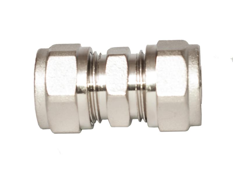 Муфта обжимна, діаметр 16 мм на 16 мм RSk Італія латунна нікельована. Обтискні фітинги RSk призначені для створення нероз'ємних з'єднань трубопроводів з металополімерних труб (PEX-AL, PE-AL, PERT-AL). Для їхнього виробництва використовується високоякісна латунь CW617N. Готова продукція має нікельоване покриття.Фітинги під обтиск використовуються для створення систем водопроводів і опалення. Асортимент бренду RSk складається з муфт, трійників і кутників, в тому числі і настінних сантехнічних куточків. Представлені моделі як з'єднувального типу, так і з переходом на зовнішню або внутрішню різьбу. Є як рівнопрохідні, так і редукційні (перехідні) обтискні фітинги різних розмірів (16-32). Дані фітинги відповідають всім європейським нормам і стандартам якості, мають підтверджуючі документи і за надійність, якість і довговічність користуються великою популярністю у клієнтів.