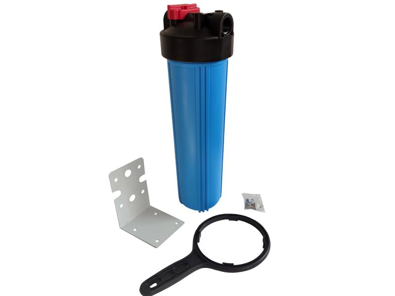 Корпус-колба BB 20". Пластикова синя колба для магістрального промислового фільтра типу Big Blue (скорочено BB). Клас продукції стандарт. Місце виробництва: Україна. Матеріал - Поліпропілен. Верхівка колби чорного кольору. Використовується для холодної води.