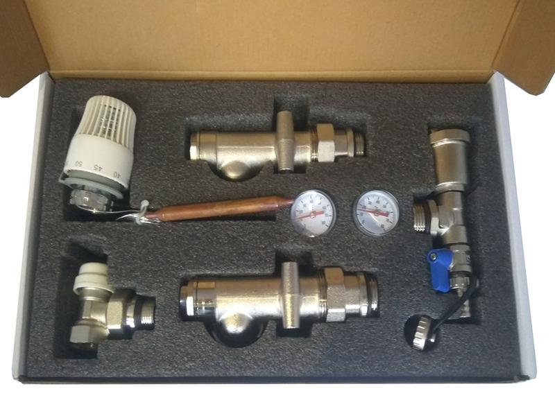 Насосно-змішувальний вузол призначений для централізованої автоматичної стабілізації температури води в трубопроводі, що подає в системах опалення підлоги великої площі в житлових приміщеннях. Розміщення - в центрі перед розподільником опалювального контуру. Крім того, вузол дозволяє здійснювати гідравлічну ув'язку первинного і вторинного контурів, регулювати температуру і витрата теплоносія в залежності від вимог користувача. Вузол складається з з'єднувального комплекту з термометром і набору. Корпус і деталі вузла виконані з високоякісної сантехнічної латуні.