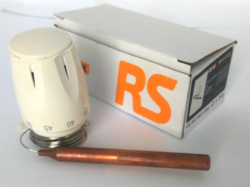 Термостатична головка RSk RS-H-T-15 з зовнішнім виносним занурювальним датчиком - це різновид автоматичного пристрою для регулювання температури в опалювальних системах без безпосереднього втручання користувача задля ефективного енергозбереження. Принцип його дії грунтується на розширенні або зменшенні в об'ємі рідинного наповнювача, яким заповнюється термобалон виносного погружного датчика термоголовки. В результаті розширення відбувається тиск на поршень, який плавно штовхає запірний конус термостатичного клапана. Конус зменшує потік теплоносія, в результаті система менше нагрівається і наповнювач в сильфоні остигає. Таким чином при застосуванні термостатичною головки RSk RS-H-T-15 задана температура в системі опалення підтримується в певному діапазоні з точністю до одного градуса ° С, дозволяючи підтримувати комфортні умови. Застосовуються для спільного регулювання теплоносія для управління термостатичним клапаном в складі насосно-змішувальних вузлів підлогового опалення. Діапазон настроюваної температури від +20 до + 60 ° С.