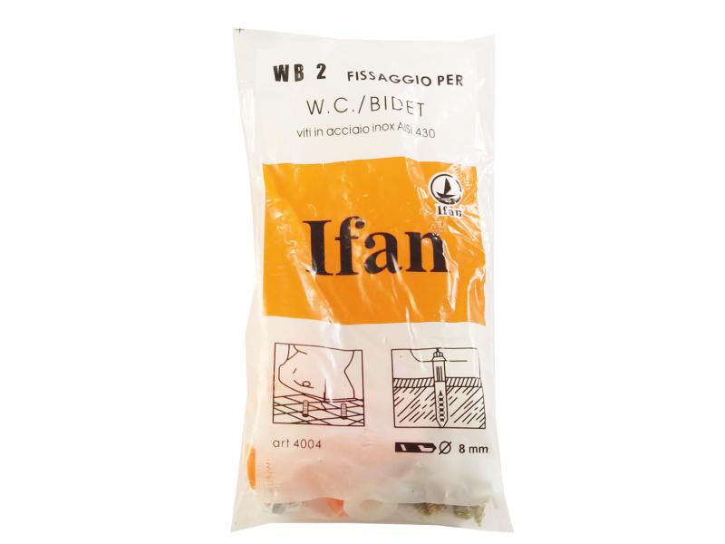 Набір кріплень для унітаза і біде від бренда IFAN, Китай. Поставляється в поліетиленовому пакеті. Комплект поставки –сталеві шпильки і пластикові дюбелі оранжевого кольору. Довжина шпильки – 9 см.Важлива перевага у тому, щоб купити такий набір для кріплення, в тому, що це вигідніше і дешевше, ніж купляти такі кріплення окремо.