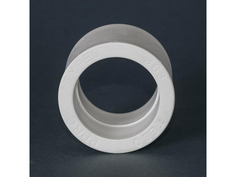 Біла поліпропіленова з’єднувальна муфта Ø25 TEBO. Продукція поставляється в білому і сірому кольорі і представляє широкий діапазон з'єднувальних елементів і гідравлічної арматури: від 20 до 160 мм. В цілому асортимент бренду ТЕВО включає понад 1000 товарних позицій. У конструкції фітингів ТЕВО technics закладено кілька принципових рішень, що підвищують надійність і зручність застосування. Латунні елементи комбінованих фітингів мають зворотні проточки, що забезпечують надійніше приєднання латунної і поліпропіленової частин. Герметичність з'єднання зберігається навіть при підвищених механічних навантаженнях. Спеціальні мітки на поверхні фітингів спрощують процес монтажу. Продукція повністю відповідає нормам ГОСТ та DIN, проходить контроль якості на всіх етапах виробництва, де використовується високоякісна сировина з Німеччини та Південної Кореї. Розрахунковий термін служби – 50 років за умови правильного монтажу і експлуатації.