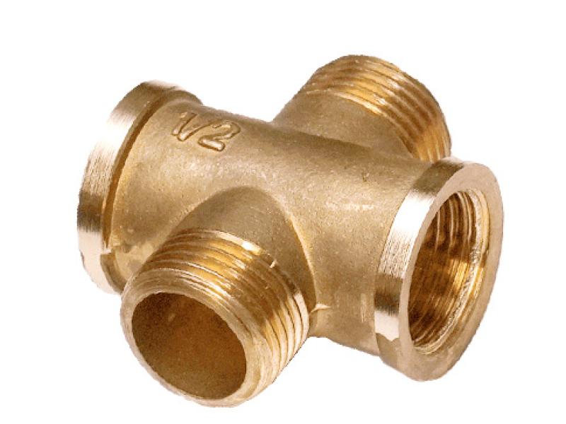 Хрестовина 1/2"ВЗВЗ латунь без покриття. Різьбові фітинги виробляються в Україні. Ця продукція має гарний попит з двох головних причин: справді великий асортимент товару та дуже доступні ціни. Фітинги виготовляються з латуні без покриття. Вони представлені в широкій розмірній лінійці і дуже різні за типами. Бренд пропонує рівнопрохідні і редукційні муфти, кутники, трійники, хрестовини, заглушки, ніпелі, перехідники, подовжувачі, згони, футорки, врізки в бак, штуцери. Продукція поставляється з зовнішньою і внутрішньою різьбою розміром від 1/2 до 2 дюймів. Вона використовується для створення трубопроводів в системах водо- і газопостачання, також може бути застосовувана при переході з трубопроводів, виконаних з різних матеріалів. Фітинги створені для використання на вітчизняному ринку і активно конкурують з продукцією дорожчих брендів.