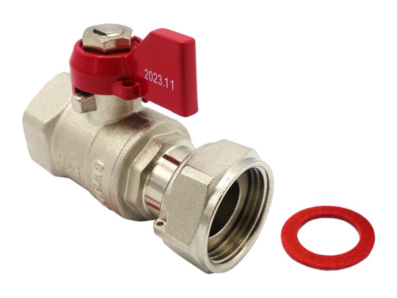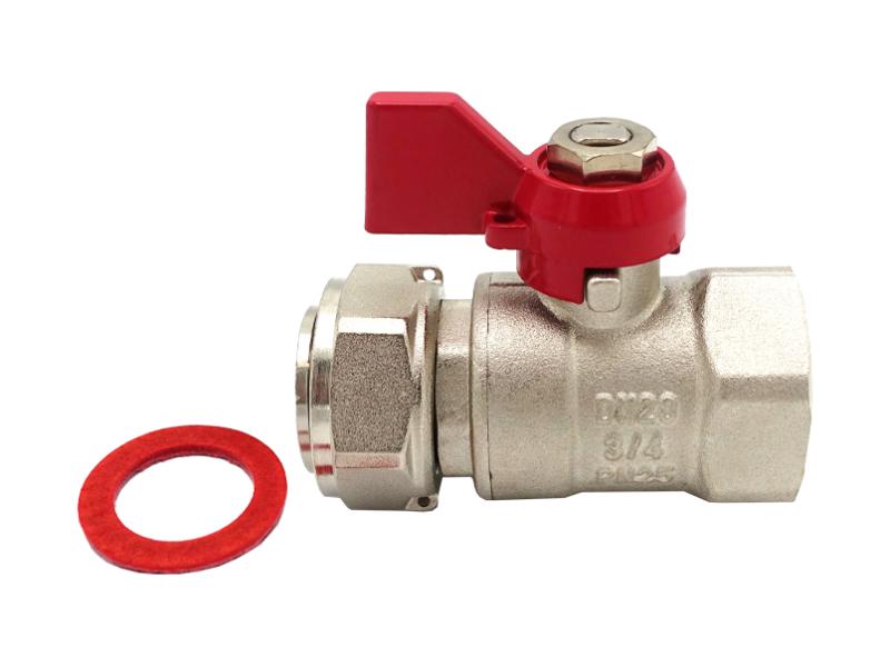 Кран кульовий прямий з накидною гайкою та прокладкою: застосовуються в якості запірної арматури в господарсько-питних, опалювальних системах для транспортування будь-яких середовищ неагресивних до матеріалу виробу. Тип з'єднання: різьблення - внутрішнє/внутрішнє. ТЕХНІЧНІ ХАРАКТЕРИСТИКИ: 1. Робочий тиск: 2,5 мПа (25 бар). 2. Робоча температура: від -20 до +120°С; від -20 до +120°С. МАТЕРІАЛИ: Корпус: латунь CW617N (ЛЗ 59-2), затвор: латунь CW617N (ЛЗ 59-2), ущільнення штока: PTFE (фторопласт). Ручка-"метелик": сталь оцинкована/алюміній. Ущільнення кульового затвору: PTFE (фторопласт). Ущільнення згону: EPDM (етилен-пропіленовий каучук). ОСОБЛИВОСТІ: 1. Дозволяють виконати поворот без використання додаткових фітингів. 2. Можливість зняття накидної гайки.