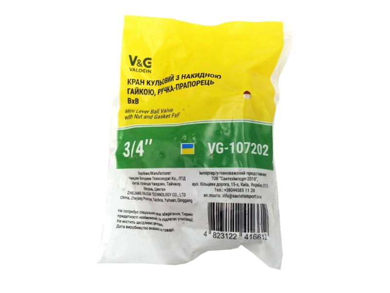 Кран кульовий Valogin прямий 3/4"ВВ з накидною гайкою VG-107202 1/16 шт