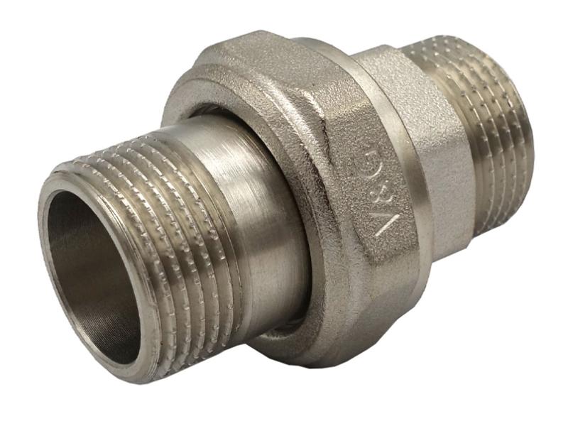 Згін-американка прямий застосовуються для монтажу трубопровідних систем (водопровідних, господарсько-питних, опалювальних), для транспортування будь-яких середовищ, неагресивних до матеріалів виробу. ТЕХНІЧНІ ХАРАКТЕРИСТИКИ: тиск робочий 2,5 мПа (25 бар) (для розмірів від 1/2" до 1", крім VG-204301, VG-204302); 1,6 мПа (16 бар) (для розмірів від 1 1/4" до 2"). Робоча температура: від -20 до +200°С (для виробів без ущільнення), від -20 до +120°С (для виробів з ущільненням EPDM). Матеріал корпусу: латунь CW617N (ЛС 59-2). Тип з'єднання: різьблення - зовнішнє/зовнішнє. Згін має діапазон діаметрів від 1/2″ до 2″.
