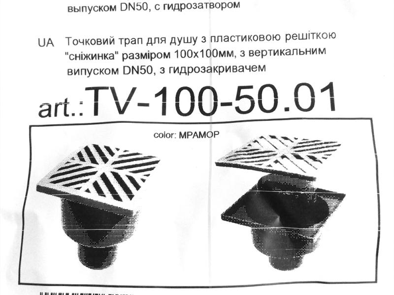 Вертикальний пластиковий душовий трап торгової марки Santehplast (Сантехпласт) з гідрозатвором сірого кольору. Розмір решітки – 10х10 см. Узор решітки – сніжинка. Діаметр випуску – DN50. Виробництво – Харків, Україна.