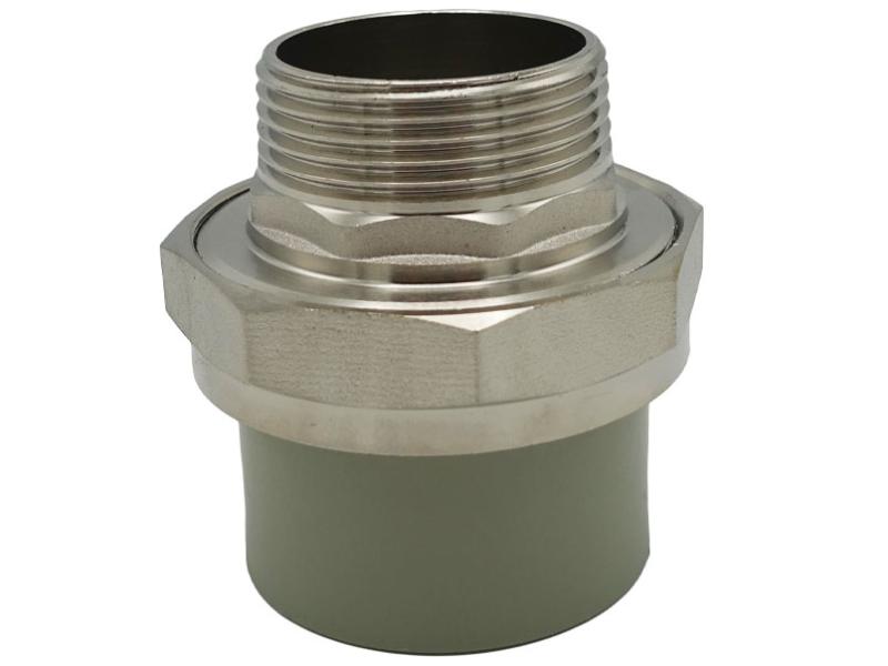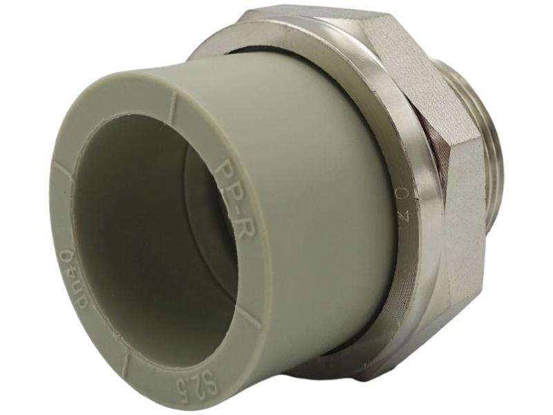 Сіре поліпропіленове розбірне з'єднання, американка, діаметр 40 мм x1.1/4", різьба зовнішня. Використовується для з'єднань різних, діаметрів труб або інших деталей, де зовнішній отвір може бути з'єднаний з внутрішньою різьбою інших елементів. Розбірна американка ППР з зовнішньою різьбою дозволяє забезпечити стійке сполучення елементів системи без необхідності використання додаткових герметиків або клею. Лінійка продукції ASCO PPR є кращою за асортиментом поліпропіленових труб і фітингів на ринку. Продукція поставляється в білому і сірому кольорі і представляє широкий діапазон з'єднувальних елементів і гідравлічної арматури: від 20 до 110 мм. В цілому асортимент бренду ASCO PPR включає понад 1000 товарних позицій. У конструкції фітингів ASCO PPR закладено кілька принципових рішень, що підвищують надійність і зручність застосування. Латунні елементи комбінованих фітингів мають зворотні проточки, що забезпечують надійніше приєднання латунної і поліпропіленової частин. Герметичність з'єднання зберігається навіть при підвищених механічних навантаженнях. Спеціальні мітки на поверхні фітингів спрощують процес монтажу. Продукція повністю відповідає нормам українського законодавства, проходить контроль якості на всіх етапах виробництва, де використовується високоякісна сировина з Німеччини та Південної Кореї.