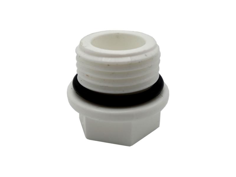 Біла поліпропіленова різьбова заглушка, діаметр 20 мм x1/2" ASCO PPR. Використовується в різних місцях систем водопостачання та каналізації, де потрібно герметично закрити кінець труби. Заглушка має зовнішнє різьбове з'єднання, що дозволяє їй надійно і герметично закрити різьбовий отвір у трубопроводі. Продукція поставляється в білому і сірому кольорі і представляє широкий діапазон з'єднувальних елементів і гідравлічної арматури: від 20 до 110 мм. В цілому асортимент бренду ASCO PPR включає понад 1000 товарних позицій. У конструкції фітингів ASCO PPR закладено кілька принципових рішень, що підвищують надійність і зручність застосування. Латунні елементи комбінованих фітингів мають зворотні проточки, що забезпечують надійніше приєднання латунної і поліпропіленової частин. Герметичність з'єднання зберігається навіть при підвищених механічних навантаженнях. Спеціальні мітки на поверхні фітингів спрощують процес монтажу. Продукція повністю відповідає нормам українського законодавства, проходить контроль якості на всіх етапах виробництва, де використовується високоякісна сировина з Німеччини та Південної Кореї. Розрахунковий термін служби – 50 років за умови правильного монтажу і експлуатації.