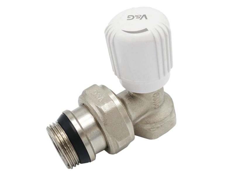 Кутовий радіаторний вентиль Valogin застосовується для зміни витрат рідини в опалювальних приладах за допомогою ручного регулювання в трубопроводах господарсько-питного водопостачання. Вентиль може застосовуватися як в однотрубних, так і в двотрубних системах опалення. ТЕХНІЧНІ ХАРАКТЕРИСТИКИ: робочий тиск: 1,0 мПа (10 бар), робоча температура: від -20 до +120 ° С. Матеріал корпусу: латунь CW617N (ЛЗ 59-2). Затвор: латунь CW617N (ЛЗ 59-2). Ущільнення штока: EPDM (етилен-пропіленовий каучук). Ручка: ABS-пластик. Ущільнення знімного патрубка: EPDM (етилен-пропіленовий каучук). Ущільнення приєднувальної різьби: EPDM (етилен-пропіленовий каучук). Особливості: Подвійне ущільнення знімного патрубка: метал до металу + EPDM, подвійне ущільнення штока, додаткове ущільнення на приєднувальній різьбі для зручності монтажу.
