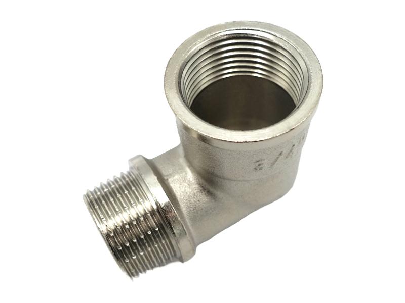 Латунні різьбові фітинги V & G (нікельовані, хромовані) застосовуються для монтажу трубопровідних систем (водопровідних, господарсько-питних, опалювальних) для транспортування будь-яких середовищ, неагресивних до матеріалів виробу. ТЕХНІЧНІ ХАРАКТЕРИСТИКИ: тиск робочий 2,5 мПа (25 бар) (для розмірів від 1/2 "до 1", крім VG-204301, VG-204302); 1,6 мПа (16 бар) (для розмірів від 1 1/4 "до 2"). Робоча температура: від -20 до +200 ° С (для виробів без ущільнення), від -20 до +130 ° С (для виробів з ущільненням EPDM). Матеріал корпусу: латунь CW617N (ЛС 59-2). Кутник три чверті дюйма нікельований внутрішньо-зовнішня різьба застосовується там, де необхідно створити поворот у трубопроводі під певним кутом. Інші назви цього фітинга: коліно різьбове, кут латунний.