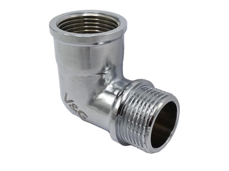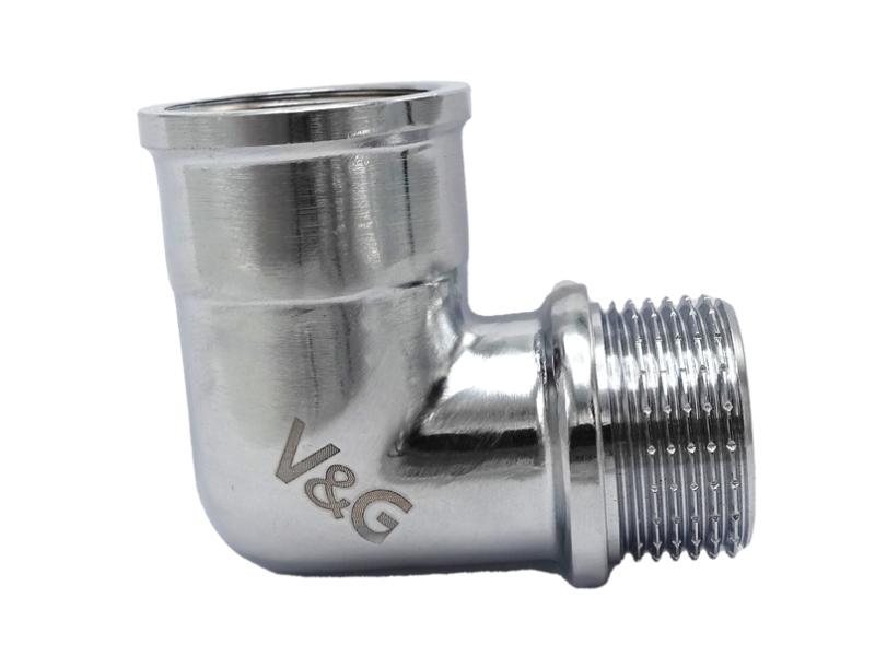 Латунні різьбові фітинги V & G (нікельовані, хромовані) застосовуються для монтажу трубопровідних систем (водопровідних, господарсько-питних, опалювальних) для транспортування будь-яких середовищ, неагресивних до матеріалів виробу. ТЕХНІЧНІ ХАРАКТЕРИСТИКИ: тиск робочий 2,5 мПа (25 бар) (для розмірів від 1/2 "до 1", крім VG-204301, VG-204302); 1,6 мПа (16 бар) (для розмірів від 1 1/4 "до 2"). Робоча температура: від -20 до +200 ° С (для виробів без ущільнення), від -20 до +130 ° С (для виробів з ущільненням EPDM). Матеріал корпусу: латунь CW617N (ЛС 59-2). Кутник хромований внутрішня-зовнішня різьба застосовується там, де необхідно створити поворот у трубопроводі під певним кутом. Хромоване покриття дозволяє створити естетичне з'єднання, там де потрібний монтаж труби у відкритому просторі. Інші назви цього фітинга: коліно різьбове, кут латунний.