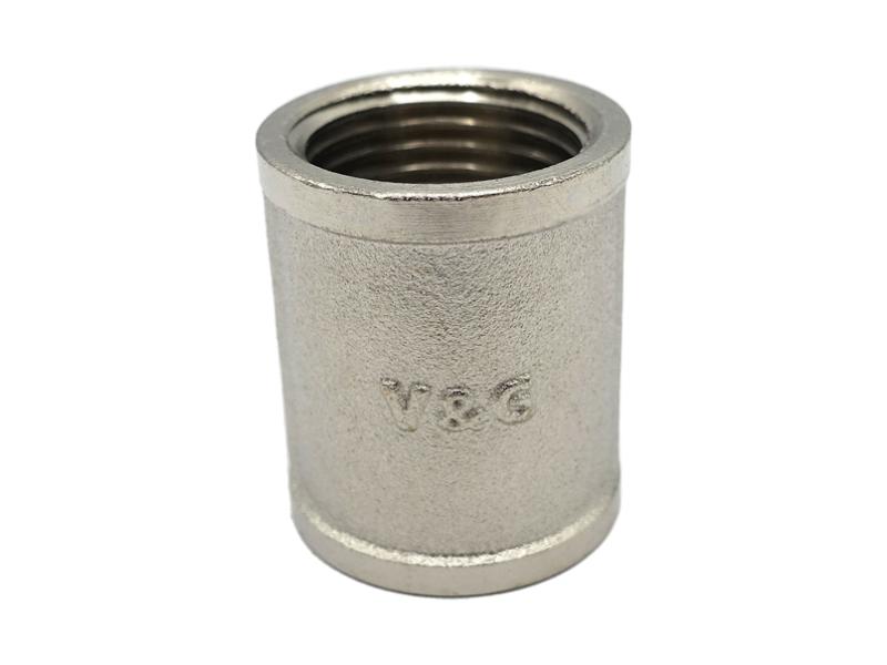 Латунні різьбові фітинги V & G (нікельовані, хромовані) застосовуються для монтажу трубопровідних систем (водопровідних, господарсько-питних, опалювальних) для транспортування будь-яких середовищ, неагресивних до матеріалів виробу. ТЕХНІЧНІ ХАРАКТЕРИСТИКИ: тиск робочий 2,5 мПа (25 бар) (для розмірів від 1/2 "до 1", крім VG-204301, VG-204302); 1,6 мПа (16 бар) (для розмірів від 1 1/4 "до 2"). Робоча температура: від -20 до +200 ° С (для виробів без ущільнення), від -20 до +130 ° С (для виробів з ущільненням EPDM). Матеріал корпусу: латунь CW617N (ЛС 59-2). Латунна нікельована різьбова муфта - це фітинг, що має дві внрутрішні різьби і дозволяє з'єднати трубопроводи по прямій лінії (180 градусів).