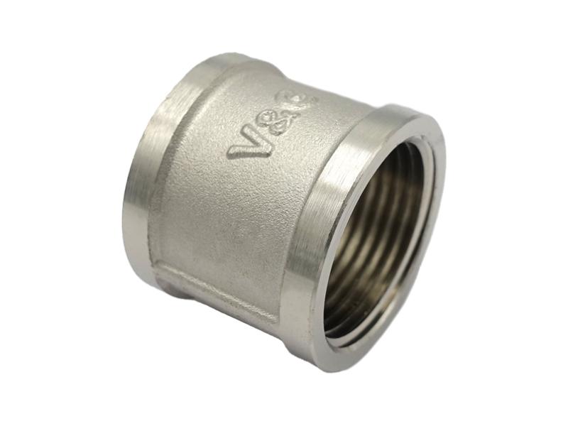 Латунні різьбові фітинги V & G (нікельовані, хромовані) застосовуються для монтажу трубопровідних систем (водопровідних, господарсько-питних, опалювальних) для транспортування будь-яких середовищ, неагресивних до матеріалів виробу. ТЕХНІЧНІ ХАРАКТЕРИСТИКИ: тиск робочий 2,5 мПа (25 бар) (для розмірів від 1/2 "до 1", крім VG-204301, VG-204302); 1,6 мПа (16 бар) (для розмірів від 1 1/4 "до 2"). Робоча температура: від -20 до +200 ° С (для виробів без ущільнення), від -20 до +130 ° С (для виробів з ущільненням EPDM). Матеріал корпусу: латунь CW617N (ЛС 59-2). Латунна нікельована різьбова муфта - це фітинг, що має дві внрутрішні різьби і дозволяє з'єднати трубопроводи по прямій лінії (180 градусів).