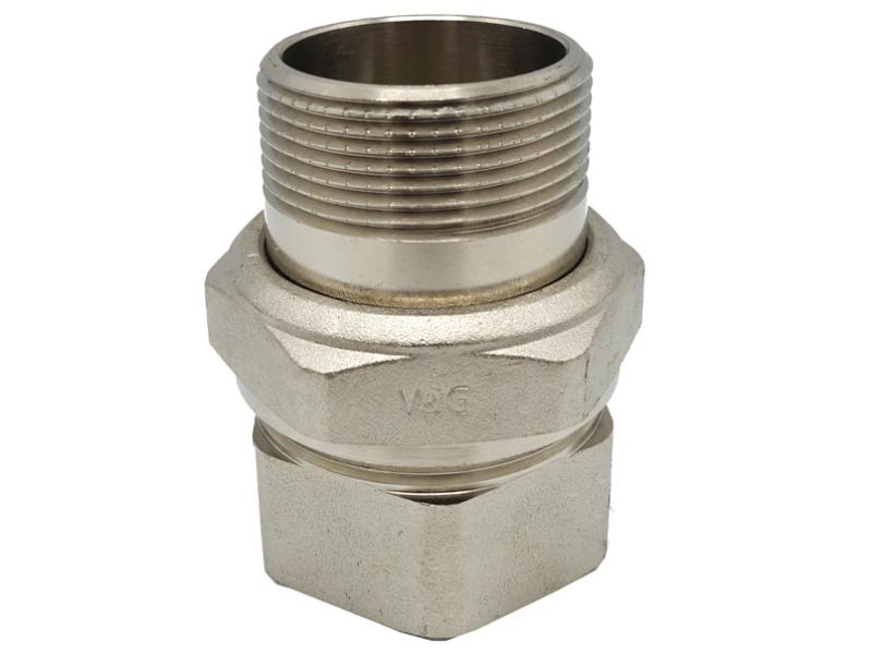 Латунні різьбові фітинги V & G (нікельовані, хромовані) застосовуються для монтажу трубопровідних систем (водопровідних, господарсько-питних, опалювальних) для транспортування будь-яких середовищ, неагресивних до матеріалів виробу. ТЕХНІЧНІ ХАРАКТЕРИСТИКИ: тиск робочий 2,5 мПа (25 бар) (для розмірів від 1/2 "до 1", крім VG-204301, VG-204302); 1,6 мПа (16 бар) (для розмірів від 1 1/4 "до 2"). Робоча температура: від -20 до +200 ° С (для виробів без ущільнення), від -20 до +130 ° С (для виробів з ущільненням EPDM). Матеріал корпусу: латунь CW617N (ЛС 59-2).