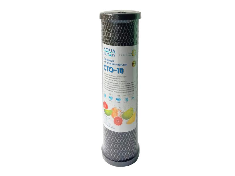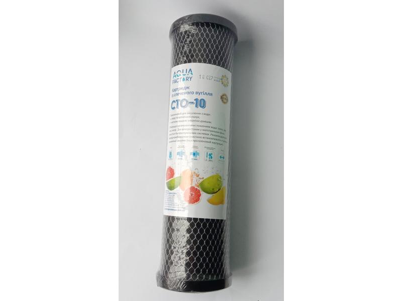 Картридж зі спеченого кокосового вугілля СТО (С)-10. Призначений для видалення з води хлору та органічних сполук, а також частково видаляє з води механічні домішки. Покращує органолептичні показники води: смак, запах, колір. Для використання у магістральних фільтрах та багатоступеневих системах очищення води. Ресурс 8000 л. Пропускна здатність 5 л/хв. Рейтинг фільтрації 20 мкм. Діапазон робочих температур 2-55 градусів.