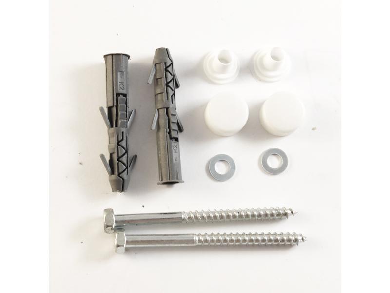 Комплект кріплень для підлогової установки унітазу і біде виробництва України. Продається в поліетиленовому пакеті з міцним картонним тримачем для підвісу. Комплектація: Шуруп з шестигранною головкою 6х80 мм нержавіюча сталь – 2 шт. Дюбель для шурупа 10х60 мм поліпропілен – 2 шт. Шайба плоска - 6х12 мм нержавіюча сталь 2 шт. Декоративні ковпачки поліпропілен – 4 шт.