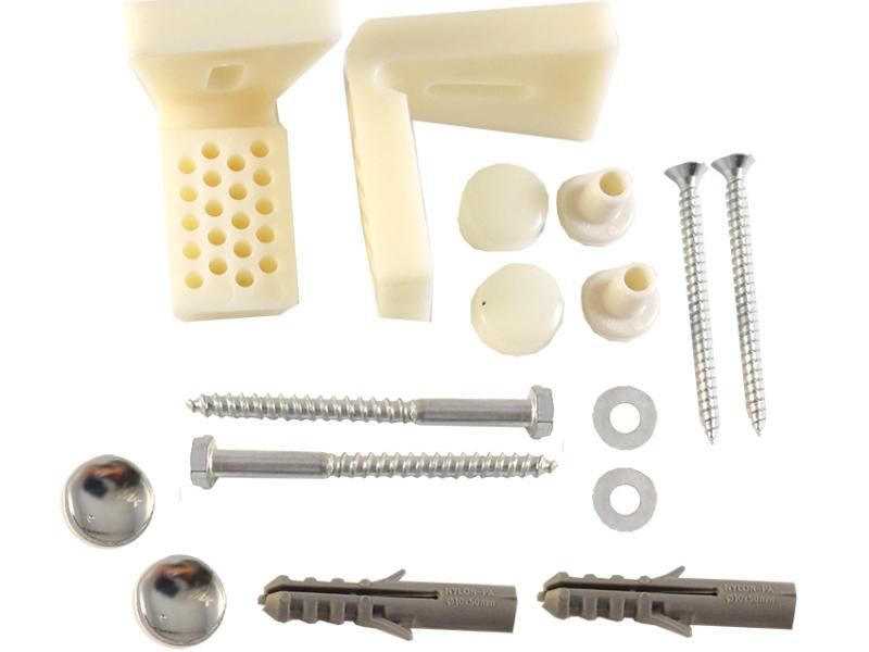 Комплект кріплень для установки унітазу і біде боковий виробництва України. Продається в поліетиленовому пакеті. Матеріал – нержавіюча сталь, пластик, поліпропілен.