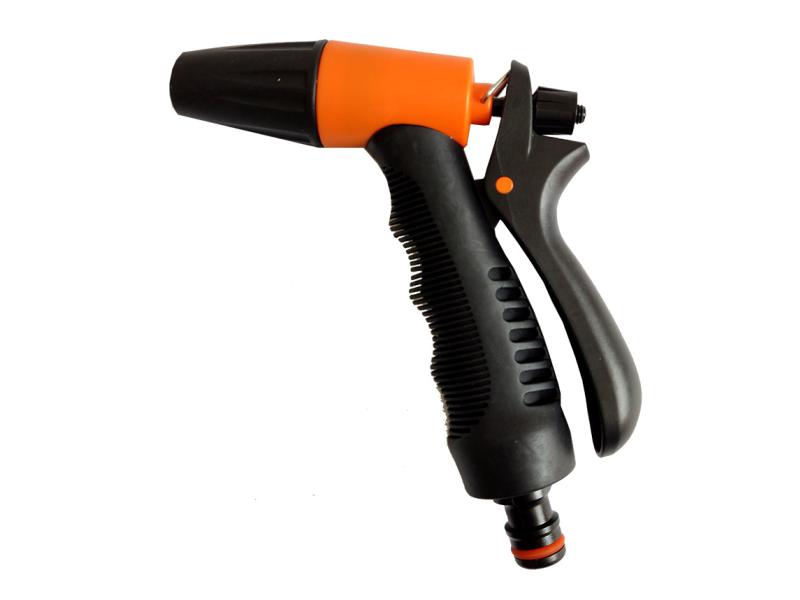 Пістолет-розпилювач виробництва Україна, економ-клас, призначений для поливу різних рослин. Дозволяє плавно регулювати потік води, що скорочує її витрата. Має чотири режими поливу, придатних для різних умов. З'єднується зі шлангом за допомогою швидкоз'ємного коннектора.