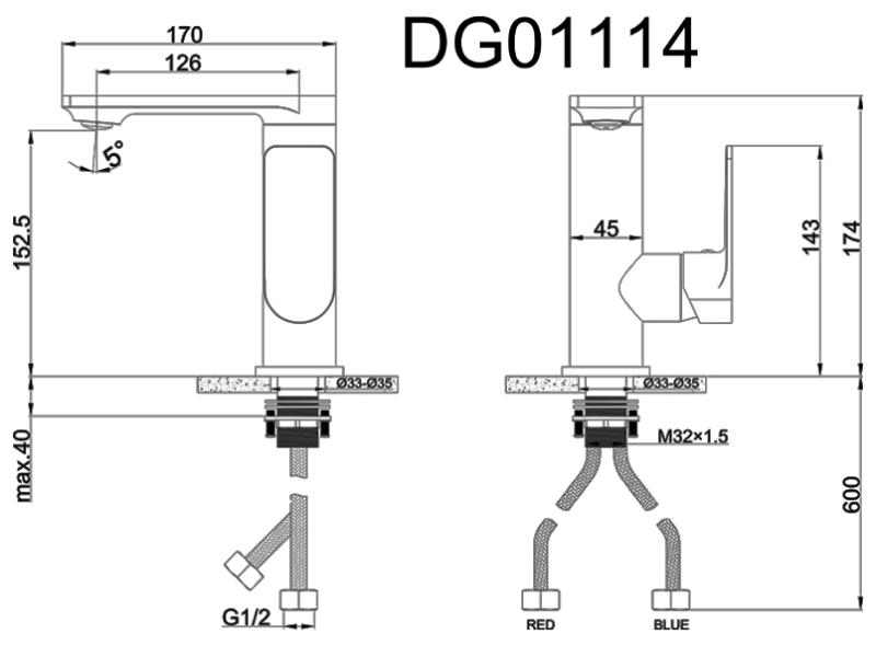 Змішувач для умивальника латунь AIM чорний матовий DG01114 (matte black)
