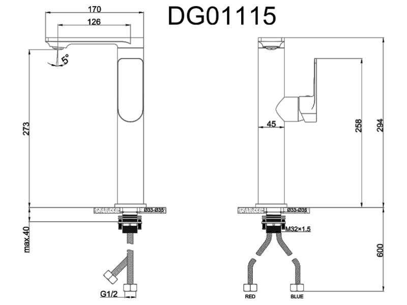 Змішувач для умивальника AIM подовжений корпус чорний матовий DG01115 (matte black)